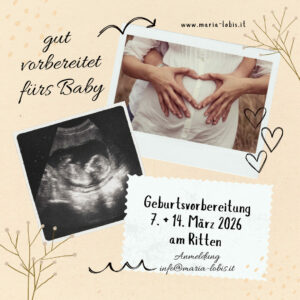Schwangerschaftskurse in Südtirol 2024 - NEU! 🔥ab 4. Mai Frühbucher 299 Euro plus GRATIS Schwangerschaftsberatung!Du möchtest dich positiv und entspannt auf die Geburt vorbereiten? Es ist deine erste Schwangerschaft oder du hast schon frühere Geburten erfahren und...